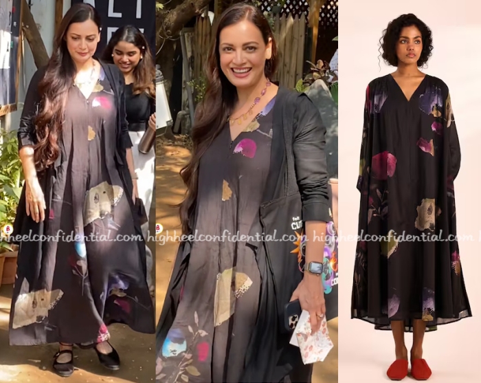 Dia was spotted out and about wearing a black maxi from Khara Kapas with mary jane style flats and a jacket. She sure looked comfy.