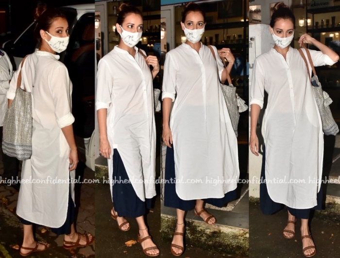 Teaming a white kurta with navy palazzos and tan sandals, Dia stepped out in Mumbai recently. It’s an easy, fuss-free look but one that still looks well put together. Can’t fault it and frankly, it’s a look we ourselves would wear in a heartbeat.