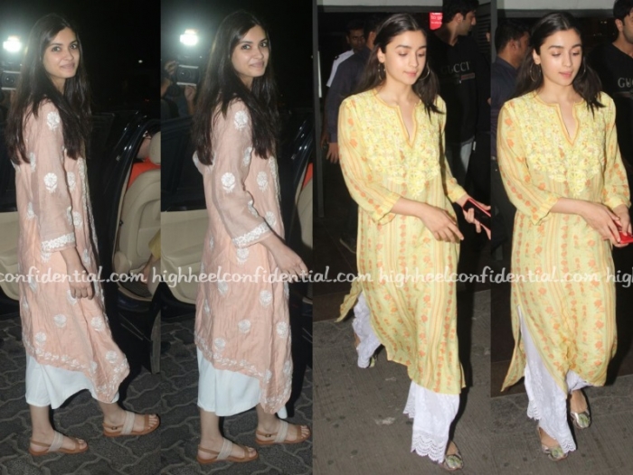 While off-duty, Diana and Alia were spotted wearing lightweight embroidered kurtas with white palazzos style pants. Whose combo are you more drawn to? We’ll take both of them.