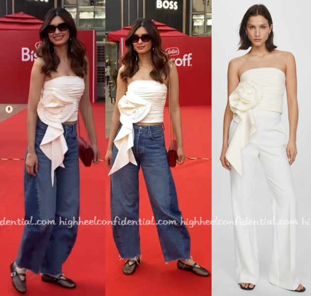 Diana was seen out in a casual avatar at an event wearing a Mango top with barrel jeans and her Alaia mesh flats. Like the pairing?