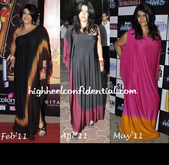 sigh……! Such a pretty face, tons and tons of money, and absolutely zero style. Why, Ekta, why????