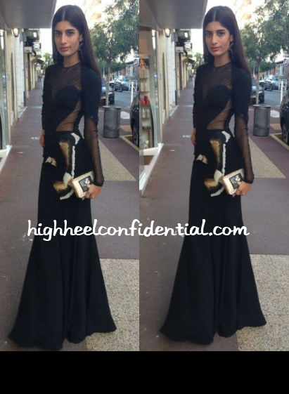 Erika is in Cannes accompanying beau Siddhant (Kapoor) who is in town for his second movie UGLY. For an event, Erika picked a black Atsu gown with a black Pinky Saraf clutch.