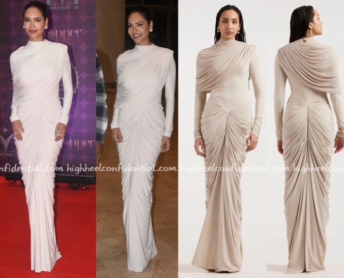 Esha, though, for her part wore the gown well with the updo and the white studs.
