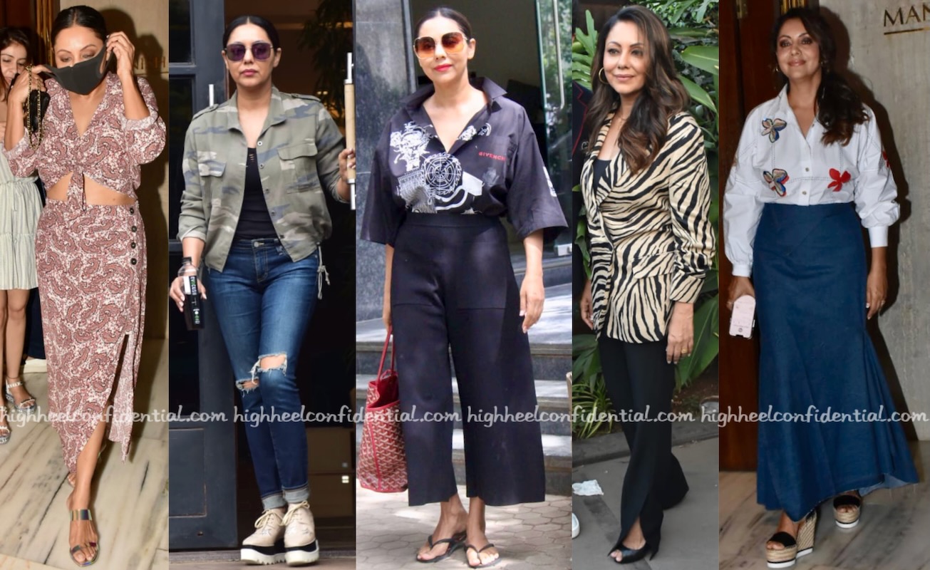 When photographed either outside her store or Manish Malhotra’s home, Gauri for the most part has been spotted keeping things casual with her sartorial choices. Of her recent sightings, have a favorite look? My vote would definitely go to the black separates paired with Goyard tote and flats.