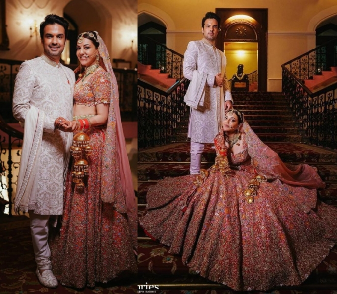 Kajal got married to Gautam Kitchlu on Friday and the bride was seen in an all over embroidered Anamika Khanna and the groom in Anita Dongre.
