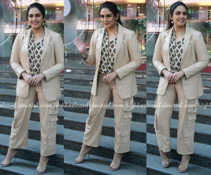 At an event where she was promoting her book, Huma was seen in a cream-beige pantsuit paired with a printed blouse. I think this would’ve been a better look if the pants hadn’t been cargo style. Agree? Disagree?