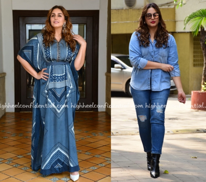 The Blues By Payal March 27, 2022 The Daily Etcetera 9 Wearing blue, Huma attended two promotional events for her movie, wearing a printed kaftan to one and denim on denim to another. Have a preference? Huma Qureshi Photo Credit: Viral Bhayani Tags: Huma Qureshi, Valamai Promotions Like it? Share it! Previous Article In Twos Next Article In Gaurav Gupta Couture