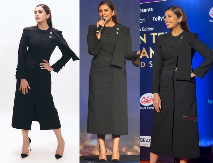 Wearing a dress from Adamo, Huma attended an awards event on Friday evening with her hair down in a side part and Gianvito Rossi pumps finishing out the look. The dress and pumps were nice but the hair was a bit of a snooze.