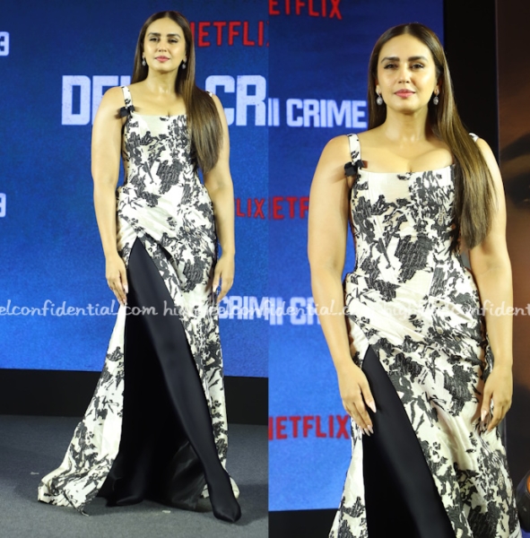 Huma attended the trailer launch of a series she features in wearing a print gown from Agnesa Vuthaj paired with her Balenciaga legging boots, one that we have seen on her plenty times before.