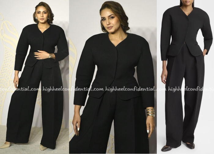 Huma attended the Bvlgari exhibition opening wearing a jacket and pant set from Jacquemus. At first glance, the pants might look funny to one because of the posing but the more I see this the more I love the look. The short do balanced off the exaggerated silhouette well.
