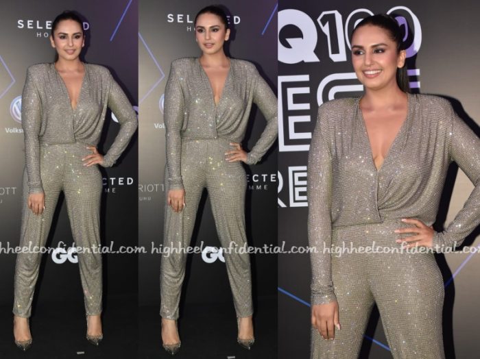 Giving us shimmer in a Terekhov jumpsuit was Huma at the GQ 100 Best Dressed party. The high-ponytail made for a nice change and she sure looked good!
