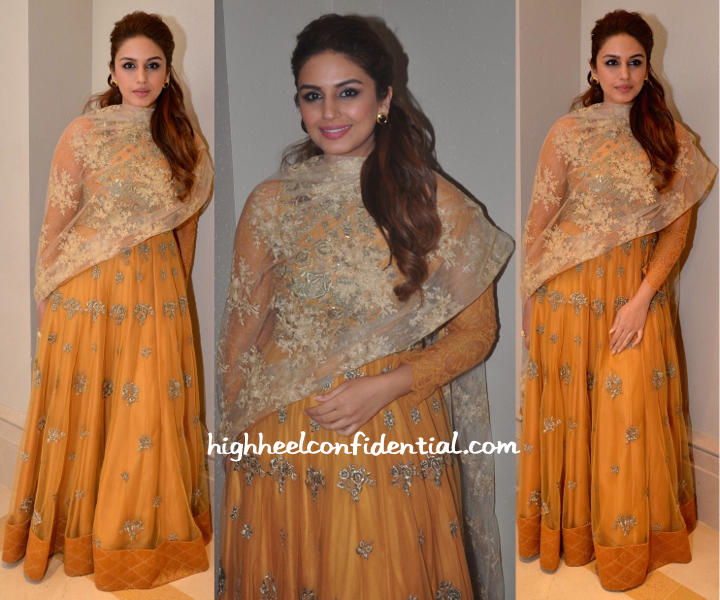 Wearing a floor-length anarkali/kurta by Varun Bahl, Huma attended a recent event. With her hair partially pinned back, she finished out the look with understated earrings. She looked lovely!