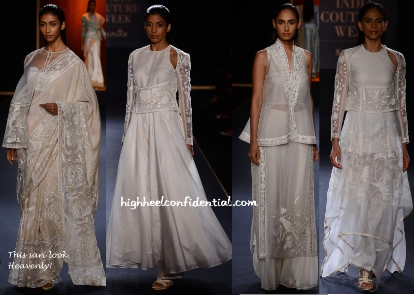 There is not much to the collection. it looks like paris collection woolmark collection has been mixed and did a couture show. its not intelligent just jumbled up pieces. their is surely no couture quality to them…… say you see a Rohit Bal piece it looks heavenly it shows of craftsmanship i mean what the hell is this? was wondering is he even qualified to do this SHOW ????
