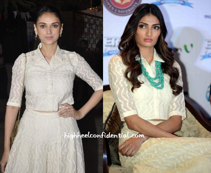 The bit of midriff showing for athiya wins it for her. The top doesn’t fit aditi very well, gaping at the end.