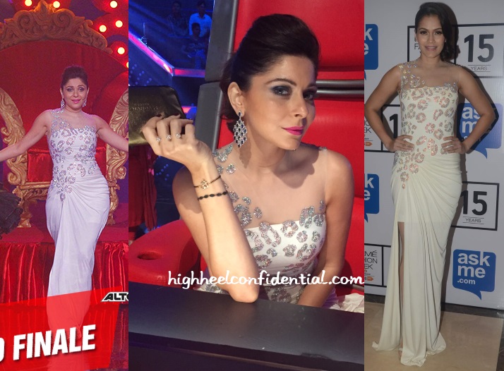 If you caught The Voice India Finale this weekend, you saw songstress Kanika Kapoor in attendance as one of the guest performers. For the finale, she donned a white Monisha Jaising gown, one that we also saw on Waluscha on Saturday evening at Lakme Fashion Week.