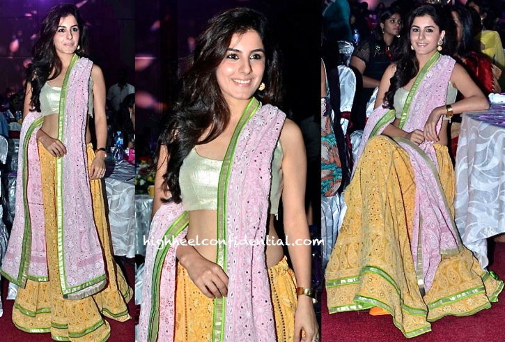Uhm well i don’t think such type of lehenga even suits her body type. The skirt and the scarf seems like something worn for a local garba than an awards show. Major FAIL!