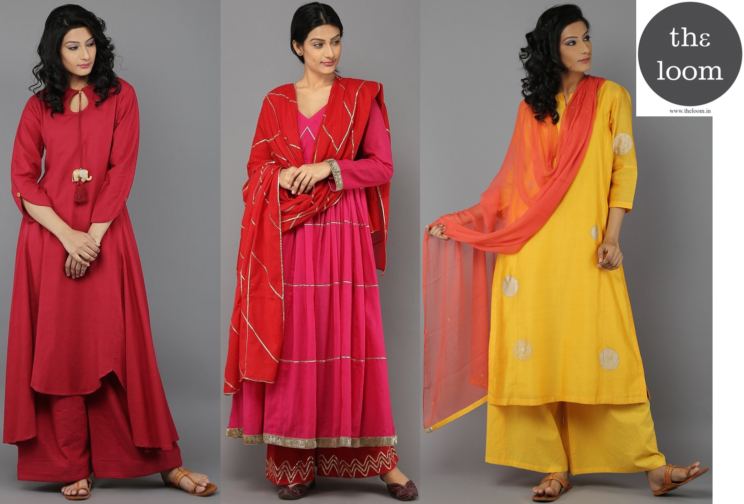Done. The maroon khadi kurta & palazzo are INR 4950 and the magenta anarkali suit is INR 6930.