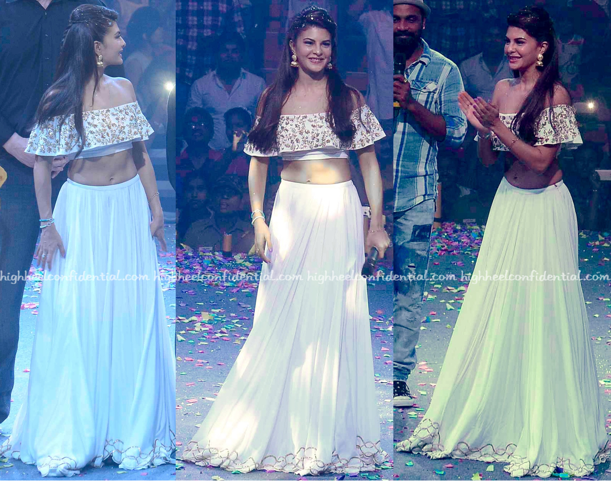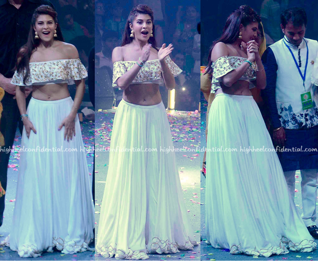 I wish the skirt/lehenga was higher waisted, even if just by a teeny bit… It would’ve worked better with the crop-top. That said, Jacqueline looked lovely and did wear it well.
