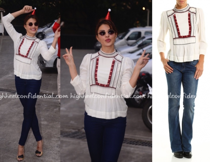 At a Christmas related event on Monday, Jacqueline was spotted wearing an Isabel Marant Étoile top with denims. Like the top?