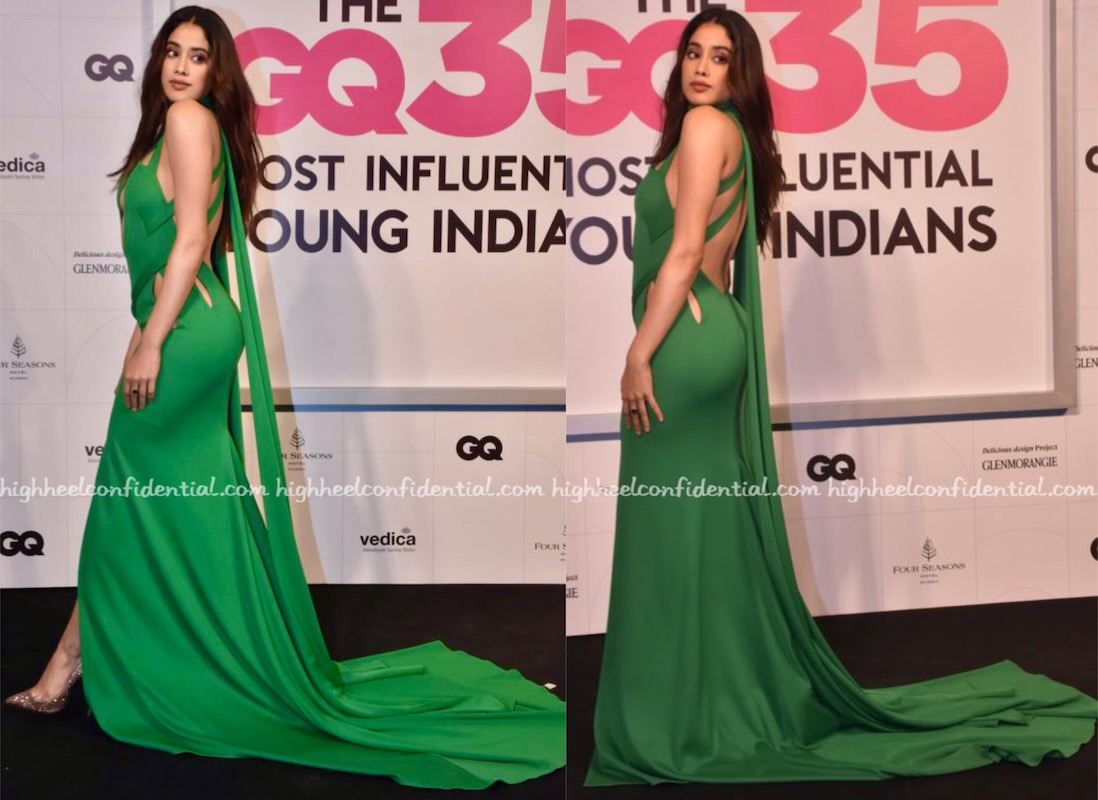 At a recent Awards event, Janhvi was photographed in a cut-out gown by Marc Bouwer. Minus the choice of color, which I was fully on board with, can’t say I was a big fan of the gown itself- the straps with the halter-neck just looks odd. The placement of the cut-outs didn’t help either!