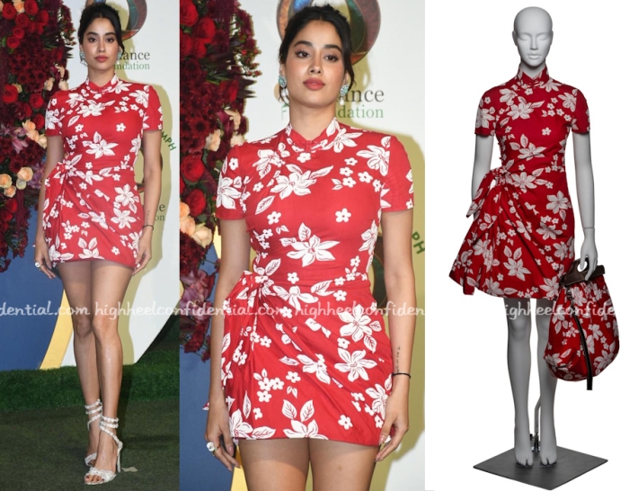 Janhvi attended an event on Monday wearing a vintage dress from Miu Miu’s Spring 2003 collection with strappy sandals and her hair in an updo. No denying that she looked great but point to note is her multiple appearance in Chinese-inspired outfits. First the Cheongsam-inspired Cavalli, last year, then the custom Anamika Khanna (see far below) featuring Chinese embroidery and now this Cheongsam silhoutte again in the Miu Miu.