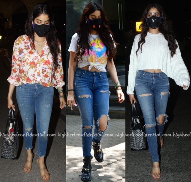 While traveling lately, distressed denims have been Janhvi’s go-to. Think the look works for her?