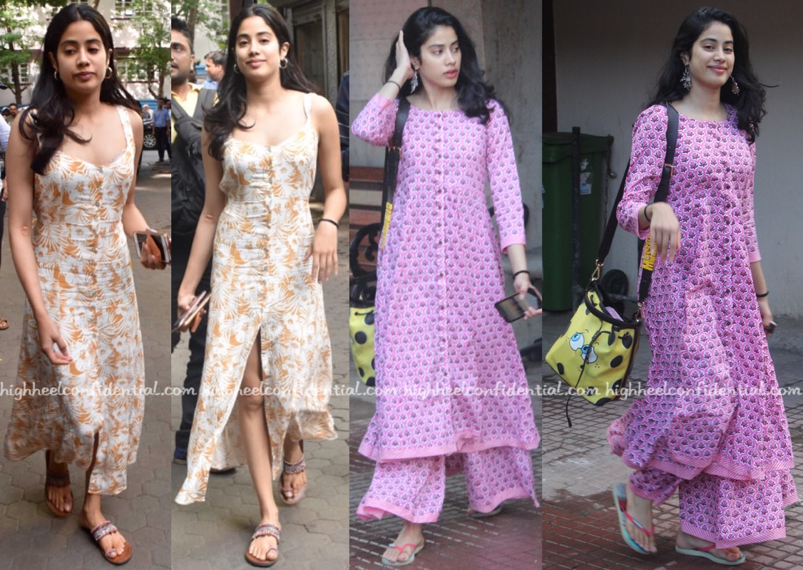 As she was out and about in Mumbai, Janhvi was photographed in two different printed outfits. Which of her two off-duty looks do you like her more in, the dress or the suit?