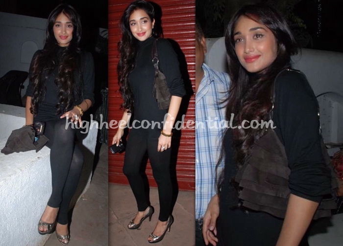 She went to Anju Mahendru bash directly from the Gajhini party (where she wore Green flowing dress) … its commendable that she found time/place to change her dress …SAYA, thats why the same bag .