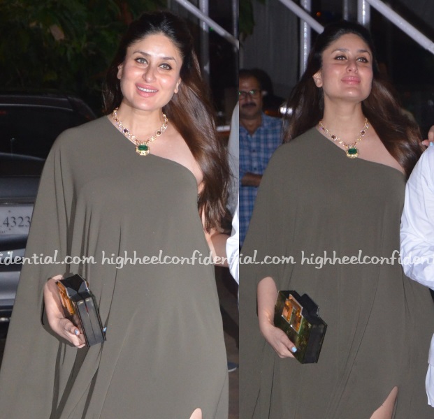 Opting for comfort but oozing tons of style was Kareena at aunt Rima Jain’s birthday bash. The actor wore a one-shouldered Deme kaftan with a geometric clutch and lace-up sandals.