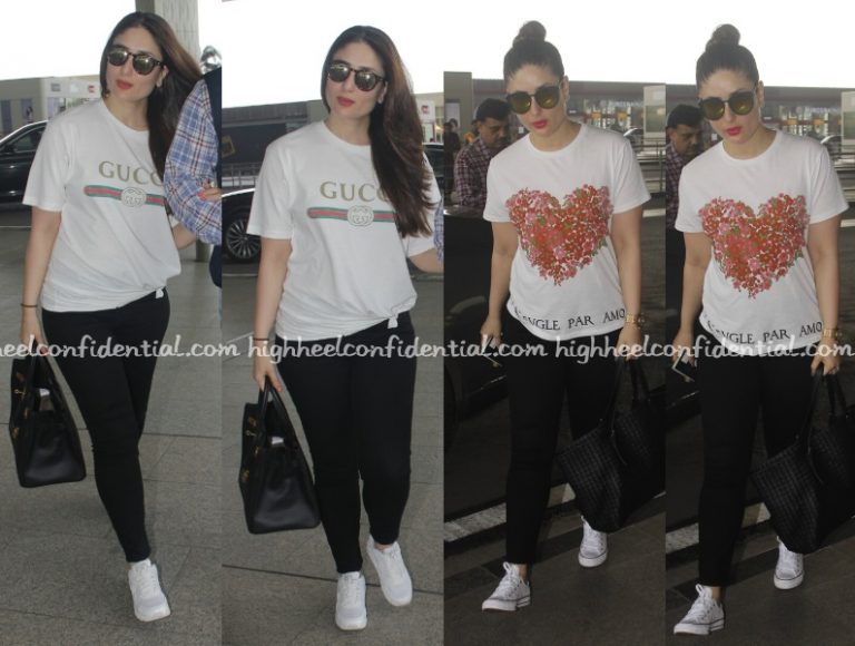 Gucci tee, black denims, sneakers was the outfit of choice while travelling for Ms. Kapoor on not one but two occasions. Which of her laidback travel looks did you prefer?