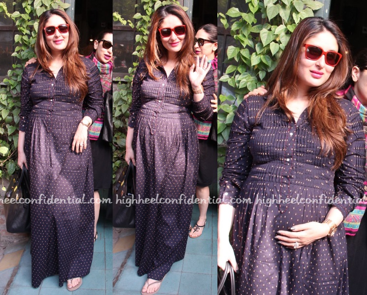 Kareena was spotted grabbing lunch on Friday afternoon and keeping it comfy in a Label Ritu Kumar maxi and thong sandals. She looked cute.