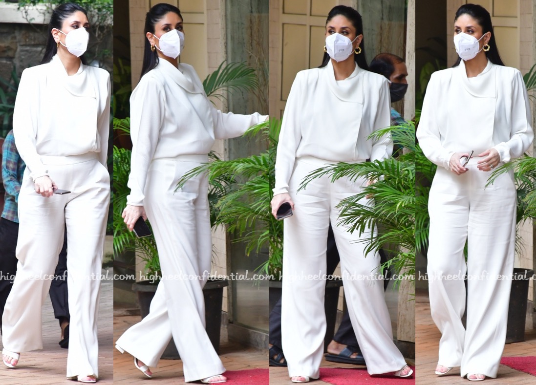 Kareena works most her clothes really well.. the pants have some fit issues but does not look bad. Also all-white outfits need some personality to carry, stand out, or look one toned.