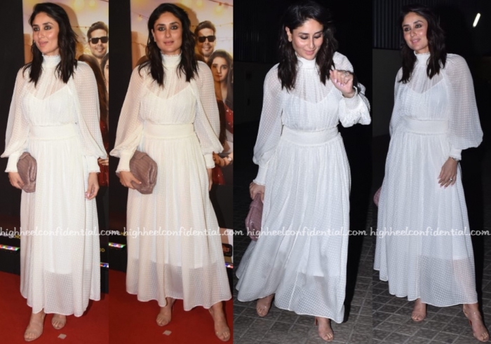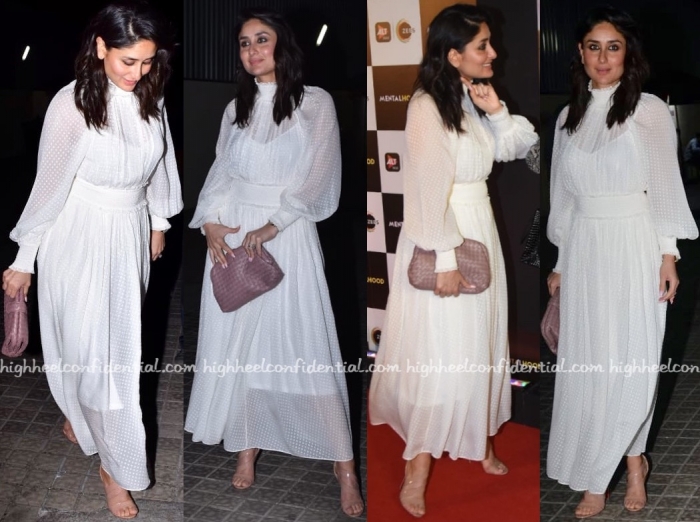 It was a Zimmermann dress for Kareena while at a screening last evening in Mumbai. Her accessories for the occasion included a Bottega Veneta clutch and Christian Louboutin sandals. She looked nice.