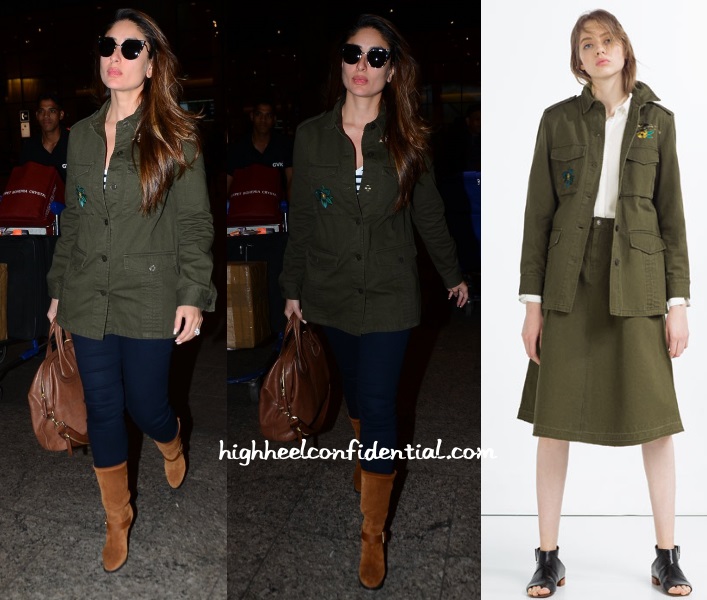 In Zara By Payal March 6, 2016 The Daily Etcetera 6 While arriving in Mumbai on Saturday, Kareena was seen in a Zara embroidered jacket paired with navy skinny denims and a tan bag and boots. Like her travel look? Photo Credit: Viral Bhayani Tags: Kareena Kapoor, mumbai airport, zara Like it? Share it! Previous Article In Manish Malhotra Next Article Parineeti on Bazaar Bride:(Un)Covered