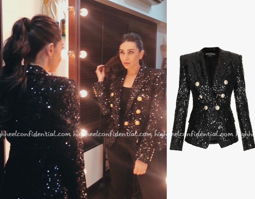 Karisma shared a picture of her on social media doing all-black in a sequined Balmain blazer.