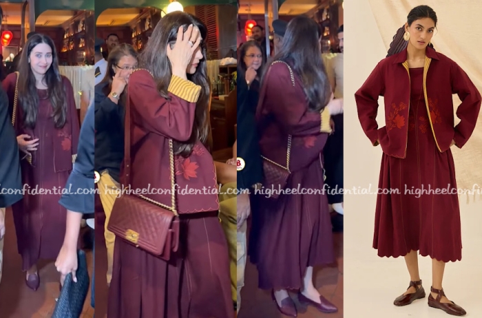 Karisma grabber dinner with her sister and friends and was spotted wearing a jacket and dress from Jodi paired with a Chanel boy bag matching the color of the co-ord set. Like the set?