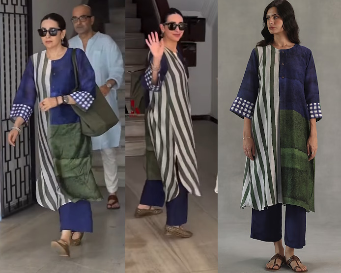 Karisma was spotted out and about keeping it casual in a kurta set from Roza Pret paired with what looked like were Alaia flats and a green tote. Like the set?
