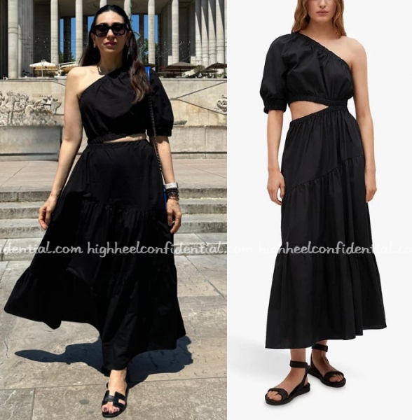 Karisma who is on vacation shared pics of her on social media and was spotted wearing a printed Ulla Johnson dress paired with pumps and a Celine bag.