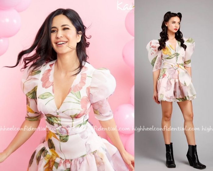 Katrina is celebrating the first year anniversary for her beauty brand and in the promotional shoots was seen in a floral dress by Gauri And Nainika.