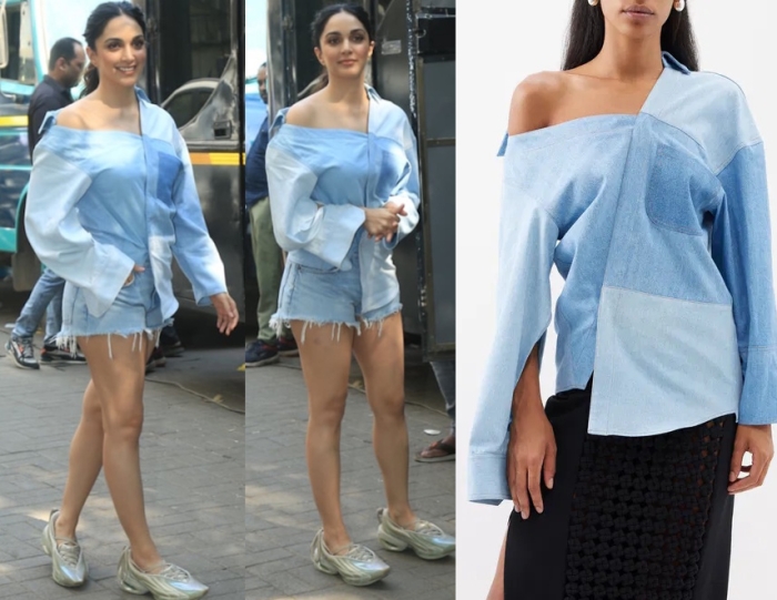 Kiara was back at work on Monday and was spotted wearing a denim shirt from A.W.A.K.E MODE with denim shorts and sneakers. Like the shirt?