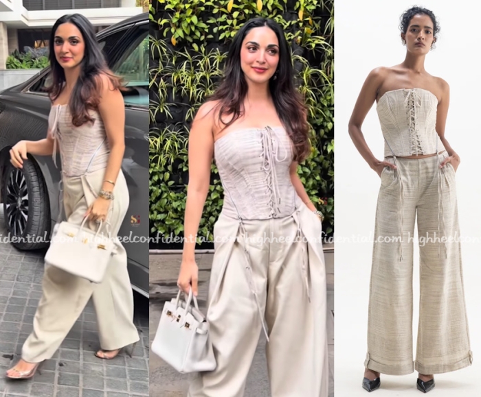 Kiara was spotted out and about recently wearing a strapless corset from Middle Ground paired with cream trousers and a white Hermès Birkin tote.