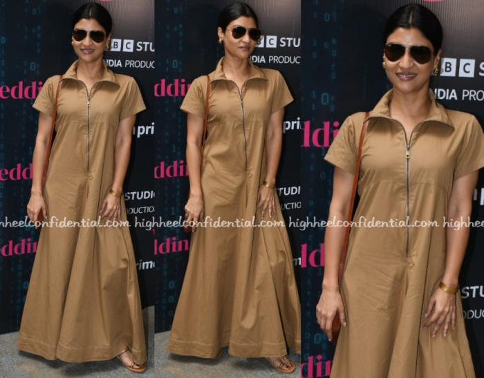 Konkona attended a screening wearing a cotton floor-length dress from Khara Kapas. While she wore it well, am on the fence about the dress itself, mostly the color. Do you like the dress?