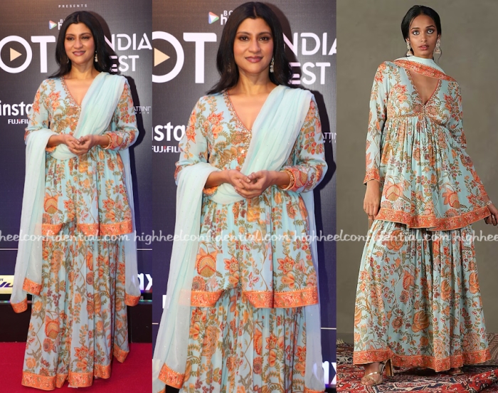 Konkona was seen in a floral print sharara set from Ri Ritu Kumar at an awards event and while at first, I thought it was too casual for the event, I didn’t quite mind it. She looked nice.