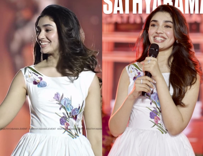 Krithi was seen at a university cultural show wearing a white embroidered dress from Gauri and Nainika. It’s not like she looked bad but the dress/frock itself felt a bit meh.