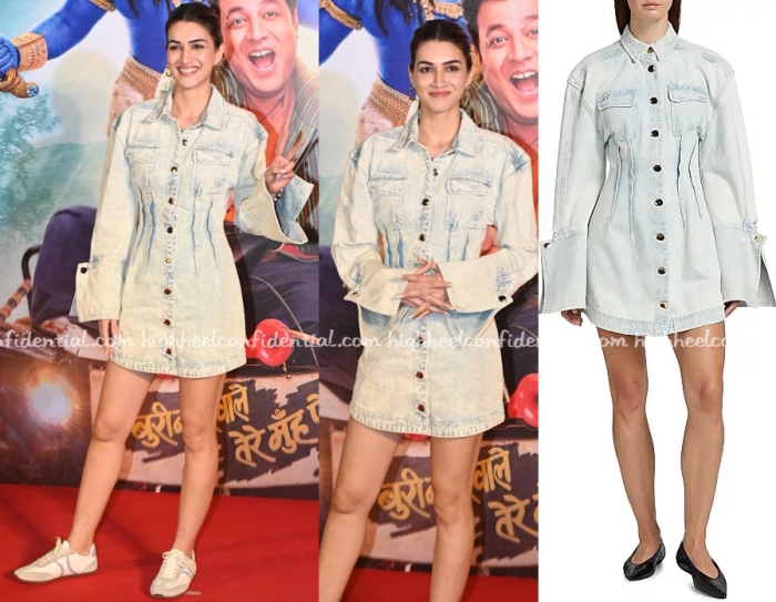 Kriti attended a movie screening on Thursday wearing an acid wash denim dress from Acler with Celine joggers. I don’t love the dress but did like her wearing it more casually.
