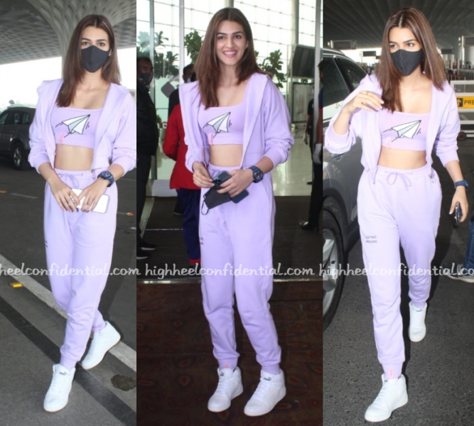 Kriti flew out of Mumbai wearing lilac athleisure separates from Kanika Goyal with Puma sneakers. A look you’d wear?
