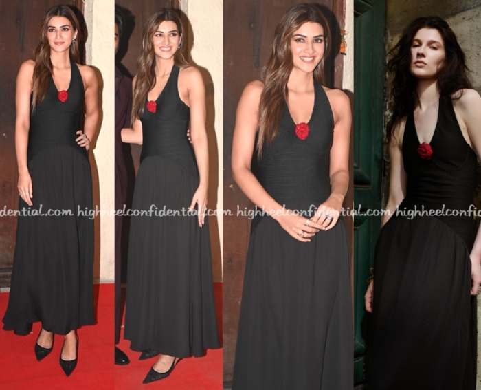 Kriti attended the success bash of her movie wearing a dress from Self-Cntrd. I don’t love the dress, I don’t hate it either. It’s so very meh.