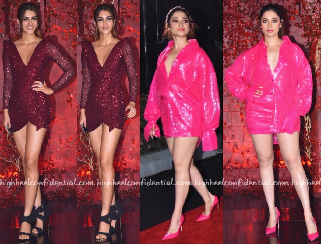Both Kriti and Tamannaah did sequins, but in color. While the former picked a Surya Sarkar mini, the latter did David Koma separates.
