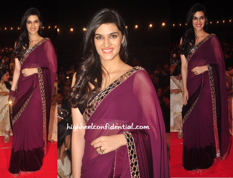 After giving us quite a few appearances in ornate MM lehengas, Kriti surprised at the Umang 2014 show by wearing a relatively simpler sari by the designer. She could’ve used a lil’ bit of color on the lips but it wasn’t quite a deal breaker.