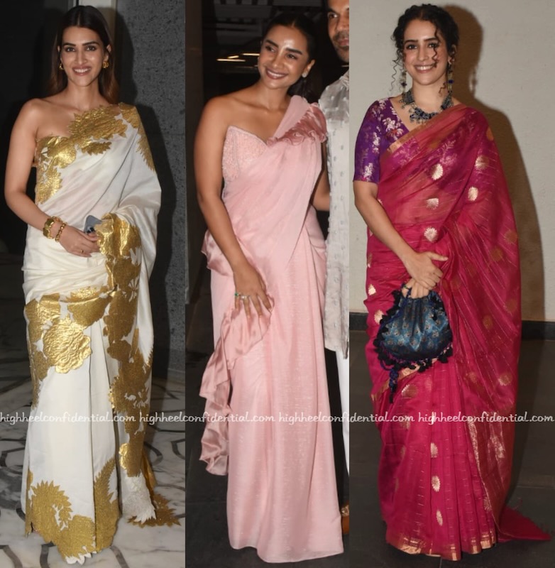 Sanya’s entire do looks so good! Kriti and Patralekha look nice but are dressed in such ugly sarees!